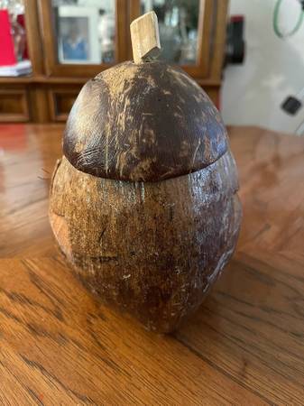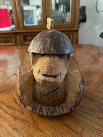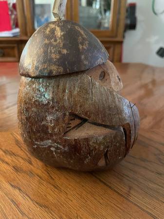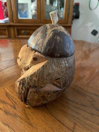 Vintage Hand Carved Coconut “Hawaii” Coin Bank Souvenir