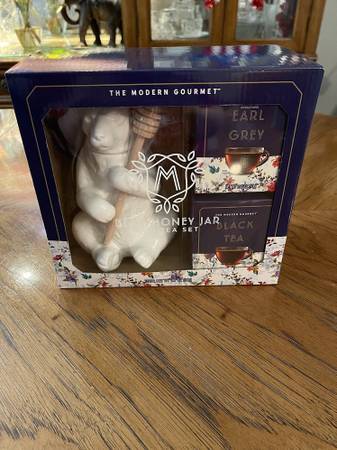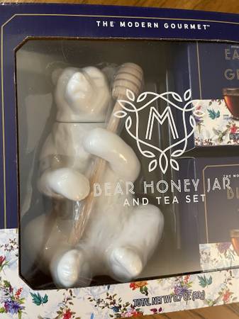 New - The Modern Gourmet - Bear Honey Jar and Tea Set The set includes an adorable bear shaped ceramic jar, a wooden honey stirrer, and a selection of both black and Earl Grey teabags Price: $20.00...