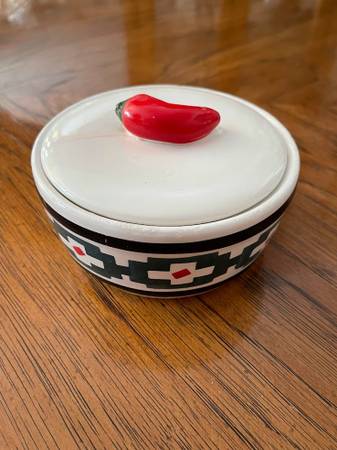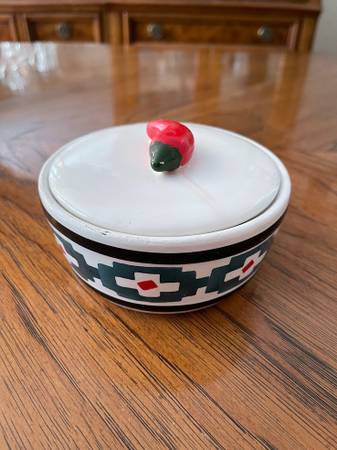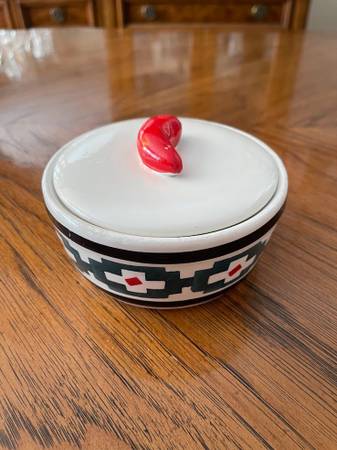 Adorable Vintage Giftco Southwestern Bowl with Pepper Lid