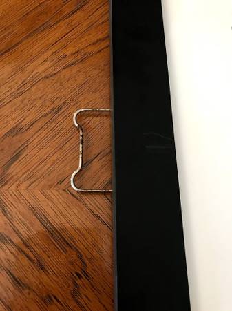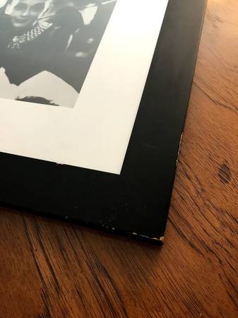 Frame is beautiful but has some minor missing paint on the edges as you can see in the pictures. The frame hanger is a little rusted, but that can collapse and be unseen as there is an alternative hanging option as you can see in the pictures as well.