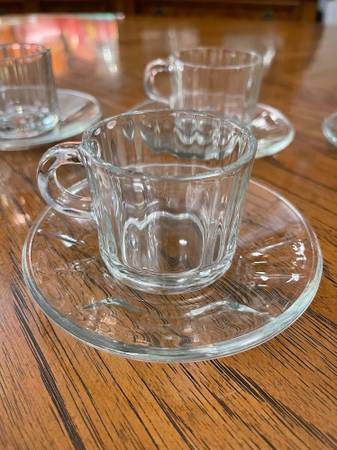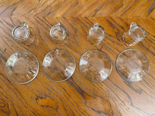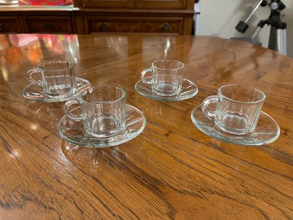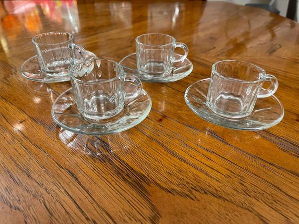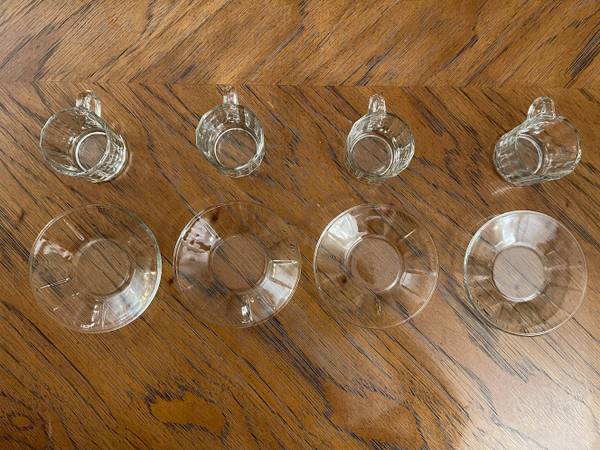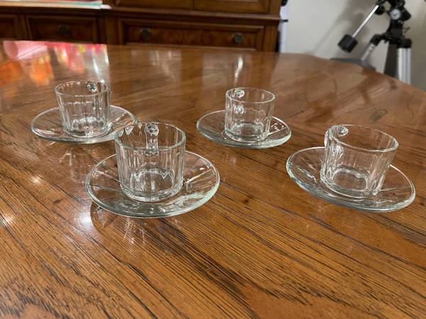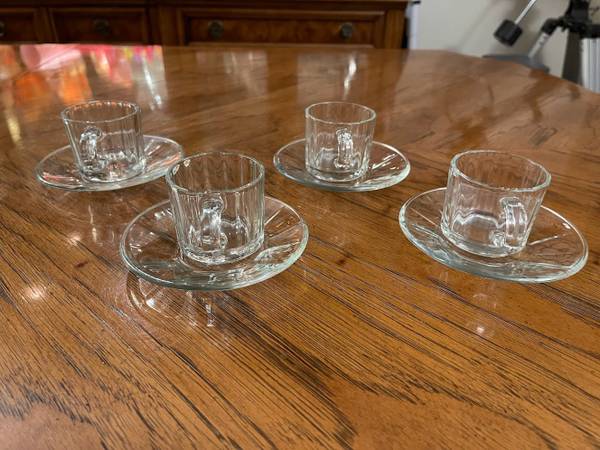 8 Piece Espresso Set - Like New - Fun-damentals Verona - 4 Glass Demitasse Cups & 4 Saucers