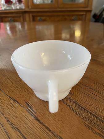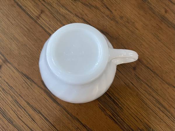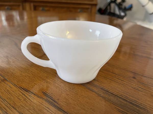 Anchor Hocking Swirl Pattern Milk Glass Tea Cup - Says Suburbia Oven Proof on Bottom