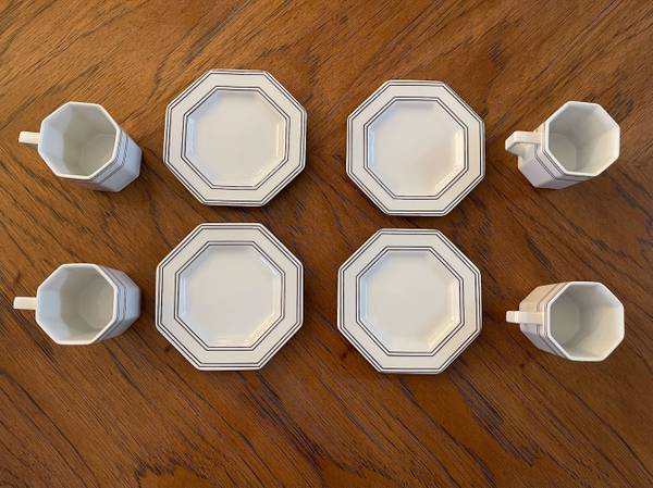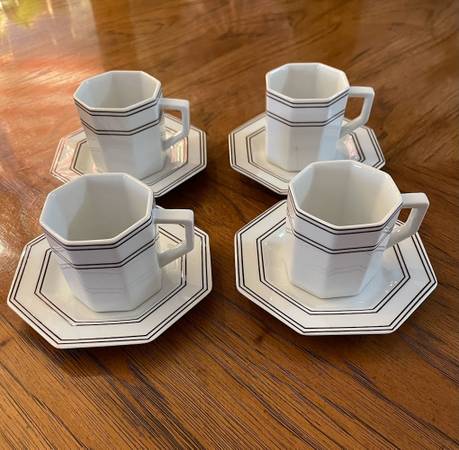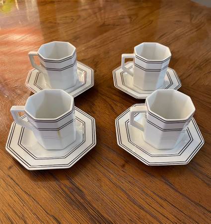 (4) 3 ounce demitasse cups, (4) 4¾” Saucers