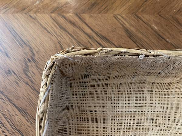 This is a Raffia basket to the best of my knowledge based on other similar ones I have seen on the Internet.