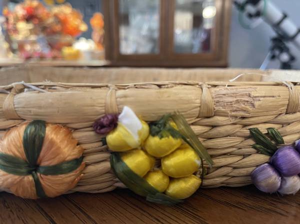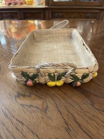 Condition - It is older and does have some wear and tear including one of the decorative fruits coming open and the inner netting of the basket coming unglued from the sides in parts. I’m guessing that part is fixable, but I will leave that up to you. See pics.