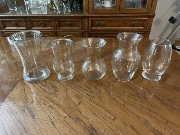 Lot of 5 Beautiful Glass Vases in a Variety of Shapes and Sizes (Will Sell as a Lot or Individually)