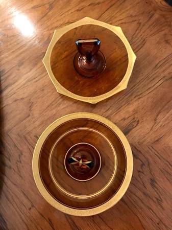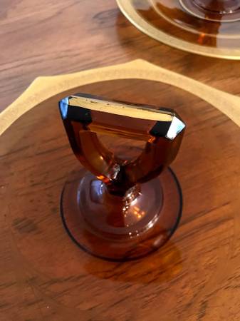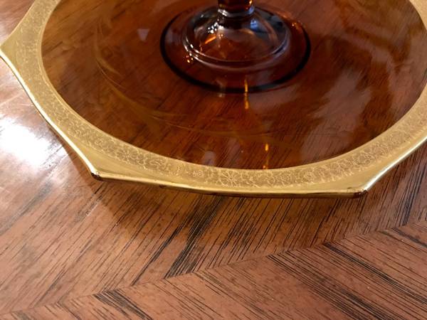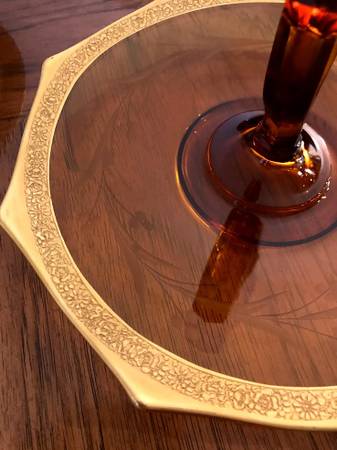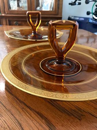 2 Vintage Amber Colored Matching Depression Glass Platters with Handles