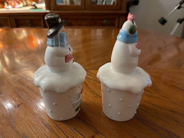 Adorable Set of 2 2000 Nancye Williams Coyne’s & Company Snowmen Candle Holders