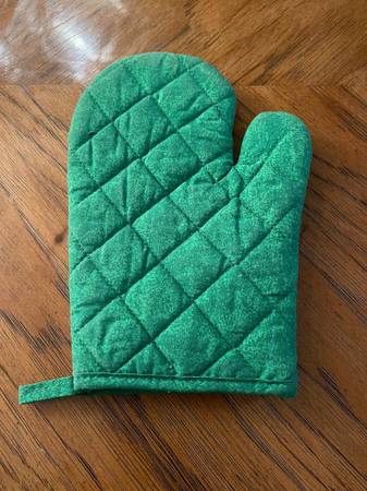 Adorable Like New Christmas Themed Oven Mitt - Candy Canes and Hearts
