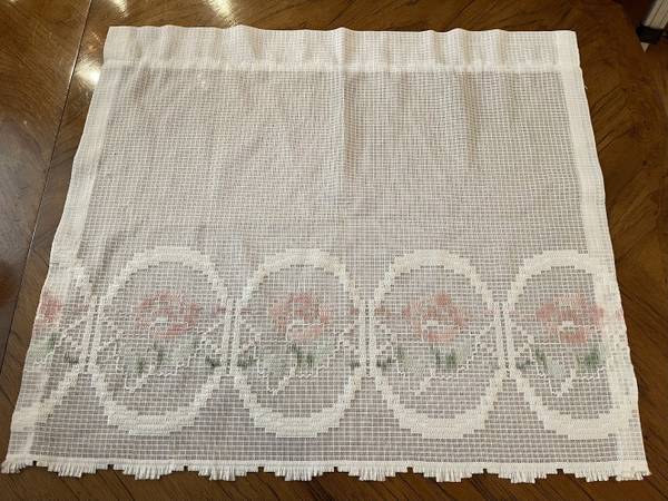 Main colors are white, pink, green (the colors are subtle - especially the pink)
