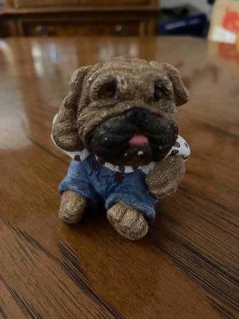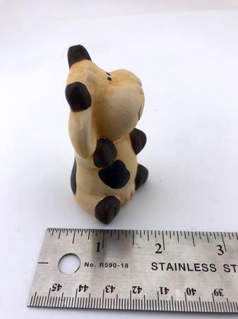 Condition: Fair quality as he has a little paint chipping on his face and he is missing one eye. The eye is an easy fix if you happen to know where to get a replacement. He’s adorable even with his issues.