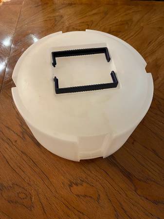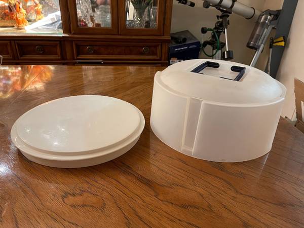 Condition: Good (Normal wear and tear) but it does not come with the side clamps so the lid does not technically attach to the bottom making the handles useless. It’s great for just covering a cake or pie that is going to be sitting on your counter, but not so much for transporting them (unless you just don’t use the handles and just carry it from the bottom)