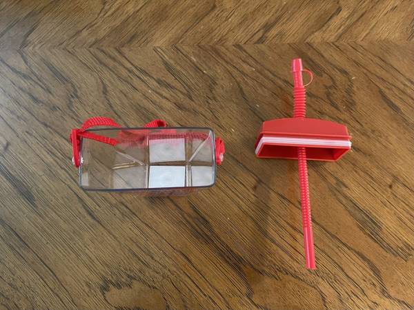 Dimensions of clear drink portion not including lid or straw: Approximately 2” across at bottom x 4” across at top x 1.5” front to back x 5.75” tall