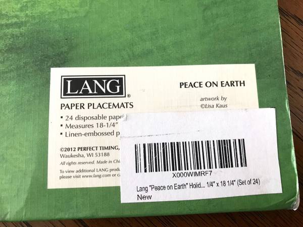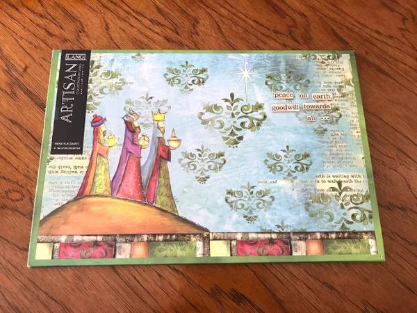 24 Lang Linen-Embossed Disposable Paper Placemats “Peace on Earth”