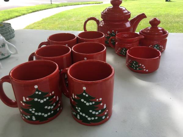 Vintage 10 Piece Waechtersbach W-Germany Coffee Tea with Ashtray Set with Christmas Theme