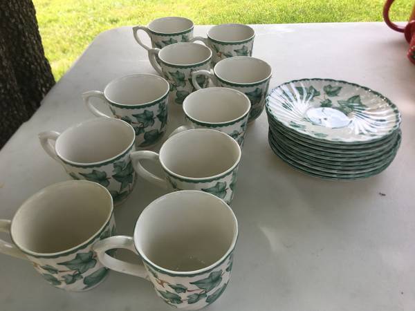 Vintage English Tea Set with an Ivy Theme - 10 Cups and 10 Saucers