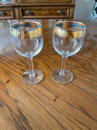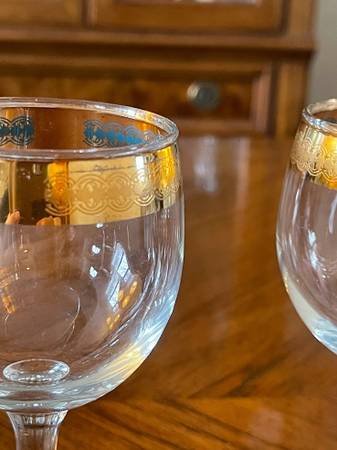 Condition: The trimming decor has normal wear and tear. See pictures for example. The glasses themselves are in excellent condition. No chips or anything of that nature.