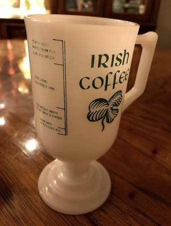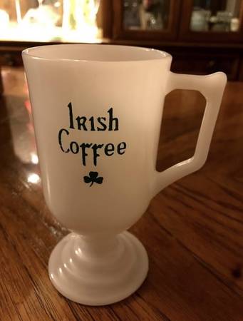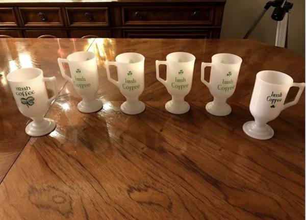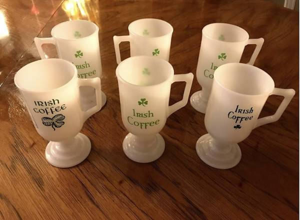 6 Vintage White and Green Glass Irish Coffee Mugs