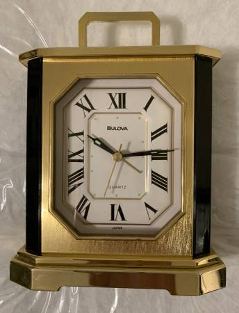 Bulova Quartz Analog Desk Table Shelf Alarm Clock Gold Black Japan -...