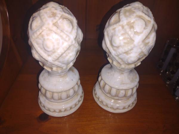 Decorative ceramic finials in perfect condition. Base 4.5" Height 9.5"