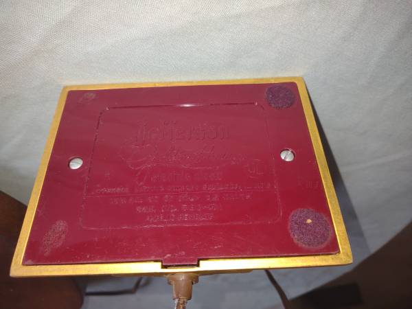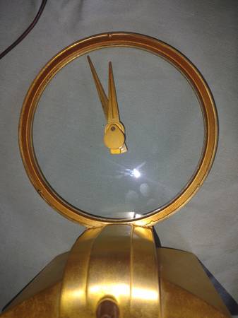 The Vintage Jefferson Golden Hour Electric Clock adds a touch of Mid-Century Modern to any room. Manufactured in the USA in 1952. See-through glass face and Arabic numeral display with a gold-plated case, is both functional and decorative.