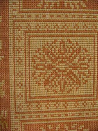 Please see all photos for a closer look at details and condition if needed. I have attached photos of the underside of the rug and also a close up picture of the hooked fabric. The last photo is of the underside.