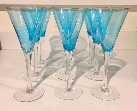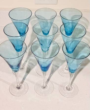 Set of 9 Ocean Blue a Martini Glasses * Era- Late 70’s * Brand New