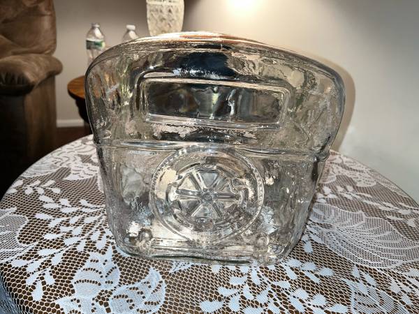 Huge Antique Car -Clear Glass Cookie or Candy Jar. 20” long by 10” wide and 10” tall. Original screw on cap. In great condition- no chips -no cracks. Cookie jar resembles a 20-30's Antique car believed to be made in the 40’s or 50’s by Libbey Glass Co.