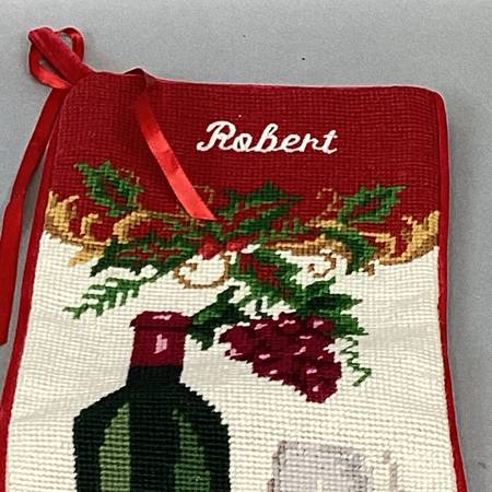 I’m Dreaming Of A Wine Christmas - Needlepoint Stocking - Robert - 17.5x7.25”. In good condition.