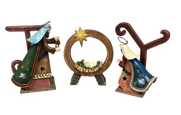 QVC Joy Nativity Scene Wooden 3 Piece Set Christmas Decoration Wood. In good condition. The j and y measures 5”H and the O is 4.5”H. We allow pickups Mon-Fri from 10am-5pm only. No weekend pickups....