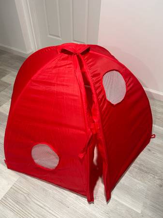 Tent approximately 4 ft diameter. Compacts similar to size of an umbrella for storage.