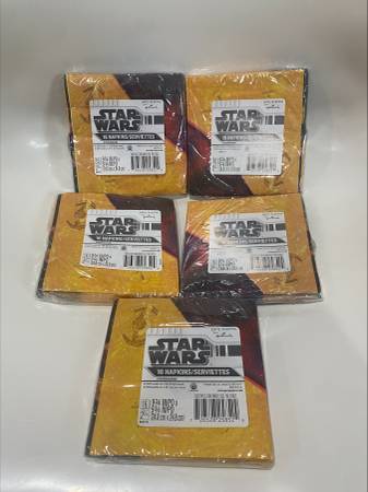 5 packs of new unopened packages of 16 Star Wars dessert napkins.