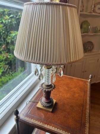 Beautiful Glass Lamp with Crystals and Silk Shade 3.5 base x 21h Smoke and pet free household