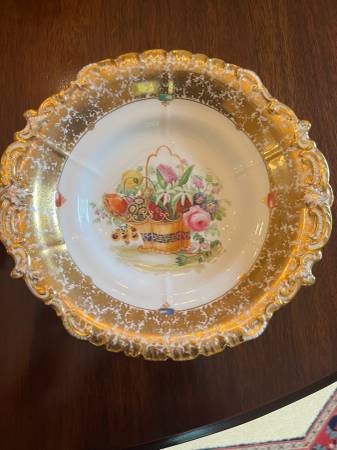 Pair of Cornucopia Gold Trim Dishes in Excellent Condition 10 diameter x 2 h On 3 feet Smoke and pet free household