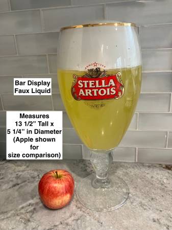 This is a vintage piece that simulates a full glass of Stella Artois. It measures 13 1/2" tall x 5 1/4" in diameter. Great display piece for Stella Artois lovers or for decorative accent in bar/rec...