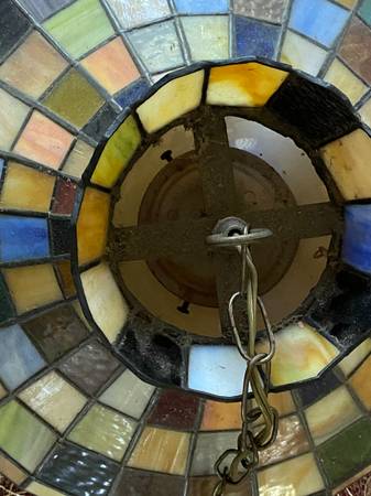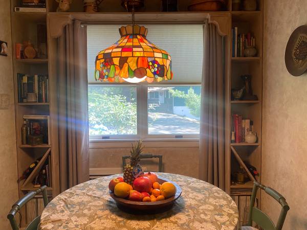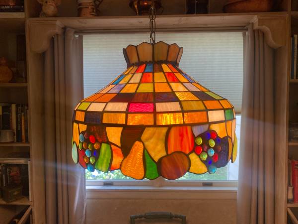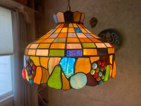 Vintage Tiffany Style Fruit Stained Glass Ceiling Light Fixture 18" round, been in family for 50 years.