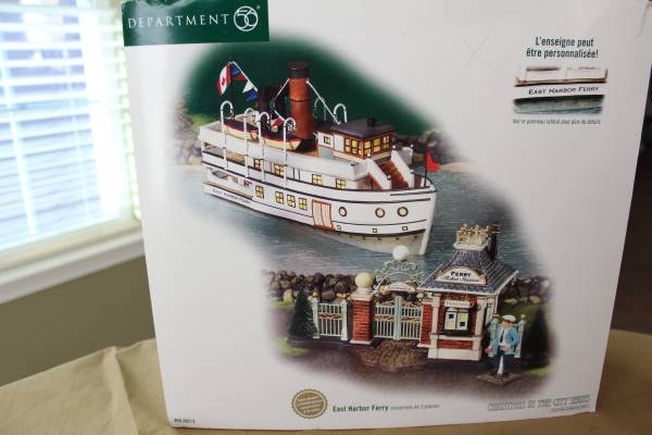 Department 56 “East Harbor Ferry” 2003. This is part of the "Christmas In The City" series. This set also includes the "Ferry Ticket Sales" accessory and "Ticket Agent". It is in the original box. CASH and CARRY ONLY!