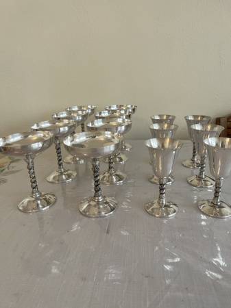 8 champagne and 6 wine goblets, before and after polishing, as is