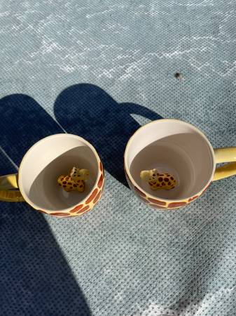 I have 10 animal mugs for sale. They are panda, zebra, elephant, giraffe and monkey. If interested email or text me at