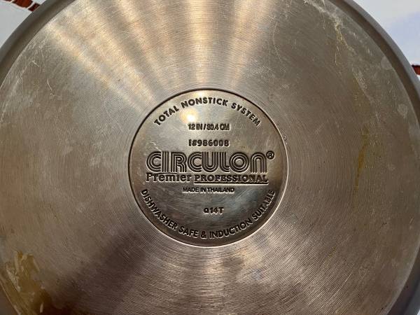 good used condition. dishwasher safe & induction suitable. total nonstick system. 12" or 30.5 cm.