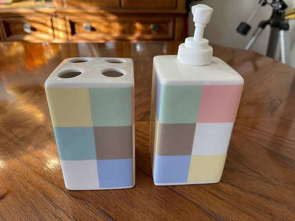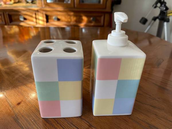 MSE Ceramic Soap Dispenser and Matching Toothbrush Holder