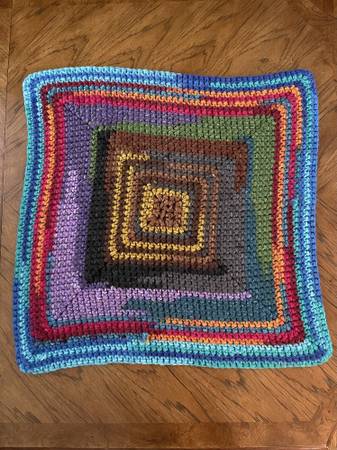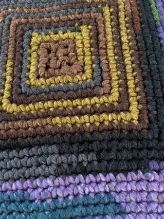 Handmade Crocheted Multicolor Square Rug