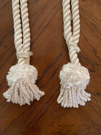 Beautiful Ivory Colored Curtain/Drapery Tiebacks - Braided with Tassels - in Excellent Condition