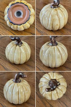 Pumpkin: Approximately 3” tall, just under 3” wide