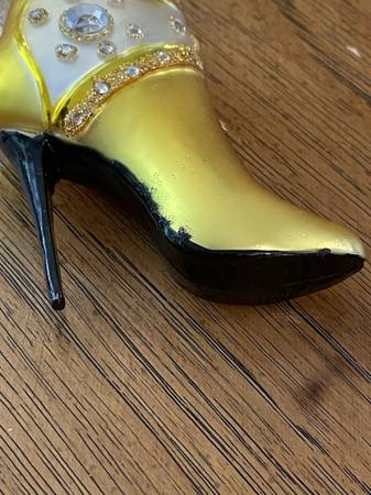 Condition: Good. The front of the boot used to have a black glitter design, which has mostly come off, however there are little bits of the glitter left (see pics). You may be able to get that off as well, but I don’t want to make any promises on that.