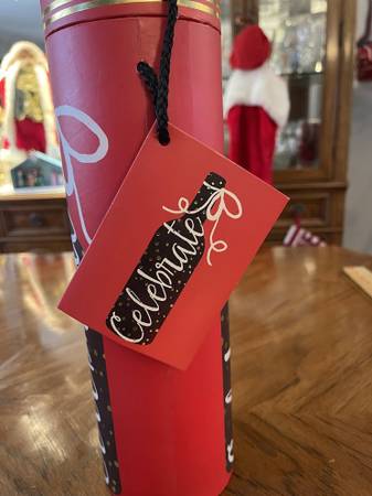 Dimensions: Boxes are approximately 8” x 8” x 8” Cylinder Box is just over 3.5” across x 12.5” high Red cylindrical box is approximately 3.75” across x 13” high and comes with a blank card attached