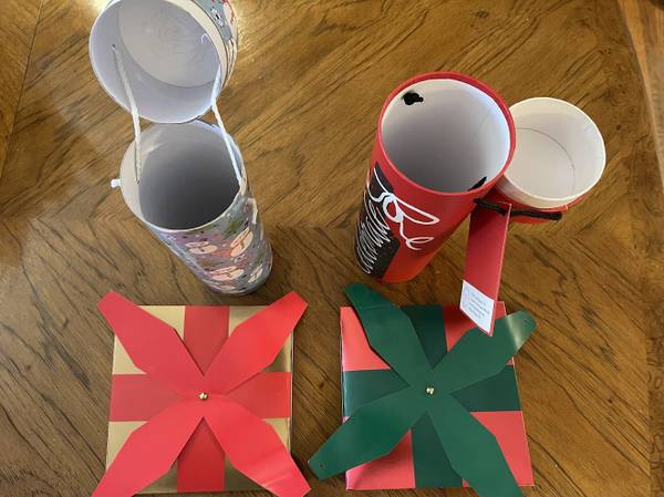 2 Pop Up Christmas Boxes and 2 Cylindrical Gift Boxes
