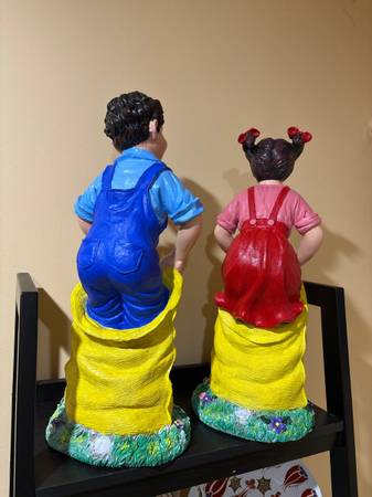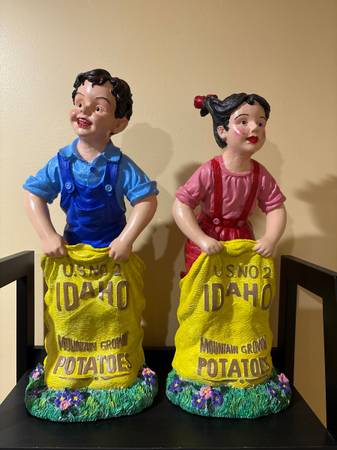 Idaho Potatoes Sack Race Figurines Are 2 Idaho Potatoes Sack Race Figurines have great details. Perfect for your home decorating or garden Size: 11” Tall