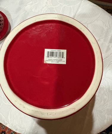 I'm selling a beautiful red ceramic ginger jar from Three Hands Corp! It's in great condition and would make a lovely addition to any room. The intricate design adds a touch of elegance