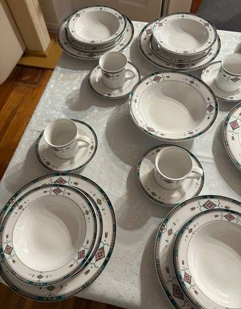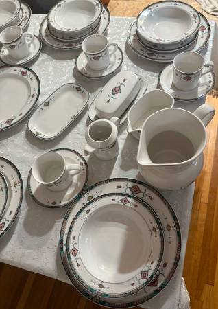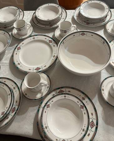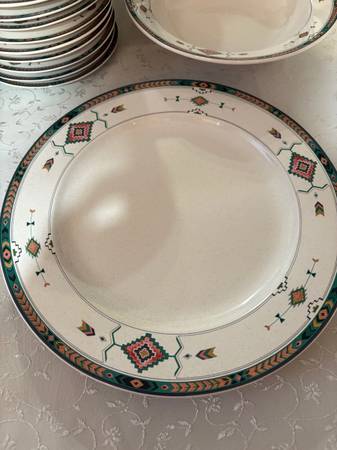 Studio Nova Adirondack Dinnerware plate Set. 64 pieces. 11 person Serve. Aztec design. These plates are in great condition and ready to add a touch of Southwestern charm to your dining experience!...